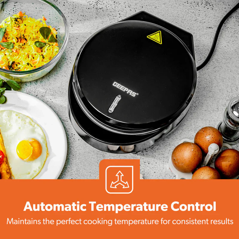 Geepas Omelette Maker – GOM36535UK 1000W Power | Non-Stick 185mm Plate | Green & Red Indicator Lights | Automatic Temperature Control | Anti-Slip Feet | 2-Year Warranty The Geepas GOM36535UK Omelette Maker is a fast and convenient kitchen appliance designed to help you prepare perfectly cooked omelettes with minimal effort....