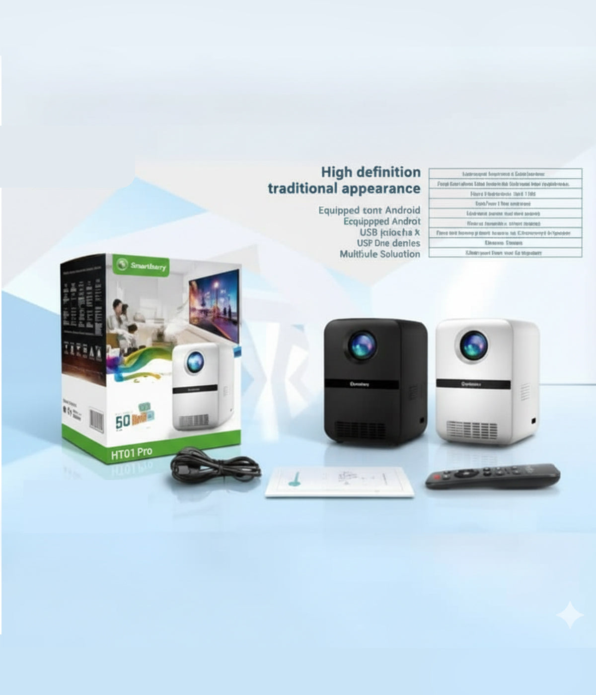 يُعد Smartbarry HT21 ميني بروجكتور جهاز عرض صغير الحجم وقوي الأداء، مصمم للترفيه المنزلي، والعروض المكتبية، وليالي الأفلام في الهواء الطلق.