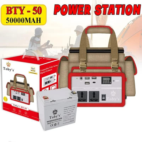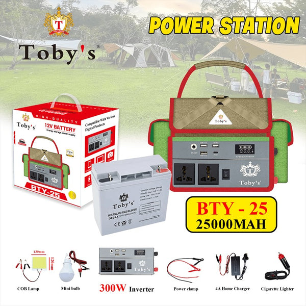 توبـي BTY-25 | بطارية محمولة قابلة للشحن 12V مع محول طاقة مدمج 300W