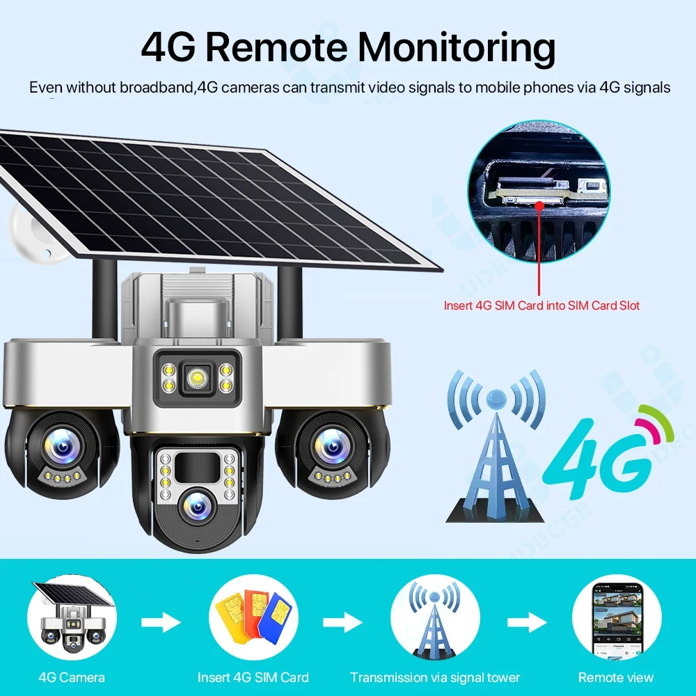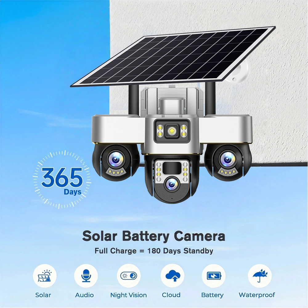 *The camera can be detached with a large capacity battery (8000mah) And the top 10W solar panel is converted into energy by absorption and heat absorption to power the battery without connecting, the power supply easy to navigate.