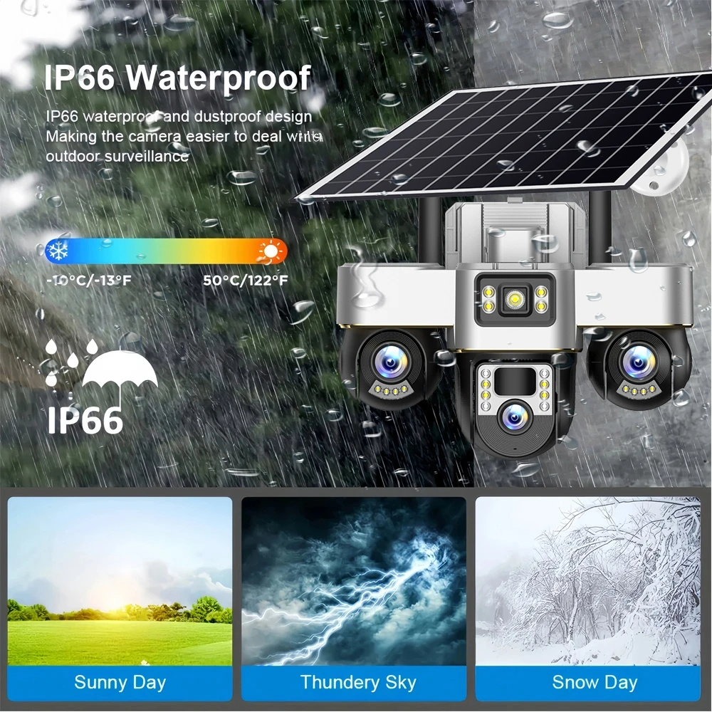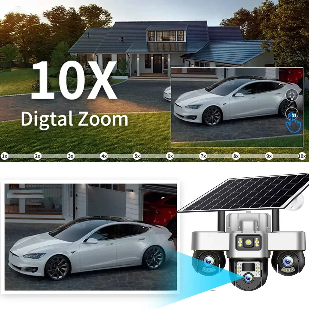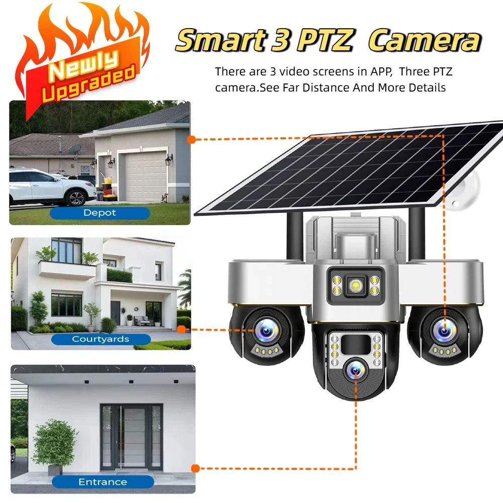Outdoor Surveillance Camera 5G HD 15MP 3 Lens PTZ Solar Cameras Night Vision 10X Zoom PIR Human Detect CCTV Security Protection